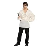 An off-white pirate style shirt with lace up neckline, ruffled collar and cuffs. This is a unisex shirt and can be worn by either men or women. Available in one size: Adult Standard. Eyepatch, hat, and wig sold separately. Pants not included. Shirt may differ slightly from shown, it is more of a cream colored shirt with black laces.